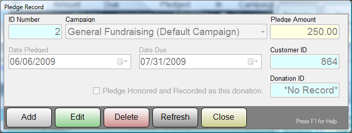 Track PLEDGES for future donations. The POS Module displays pop up reminders to these patrons whenever they transact at your facility.