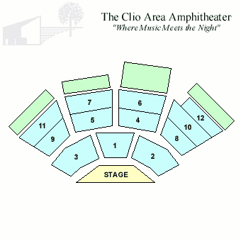 The Clio Area Amphitheatre is an outdoor performing arts facility with an over all seating capacity of 3130 seats, with 2130 of those being reserved seating.