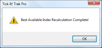bring up the menu. Select RE-CALCULATE BEST AVAILABLE INDEX as shown here: