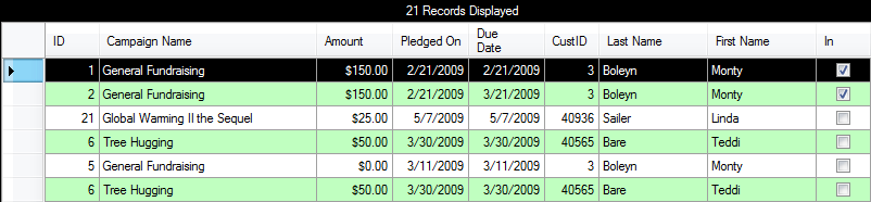 When you have the parameters entered as you like, click on the SEARCH button to generate a list of matching pledges: